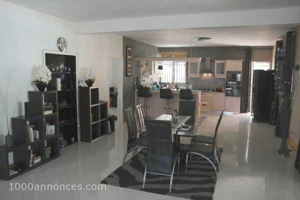 Coup de coeur assuré pour cette villa moderne de 185M2 avec des matériaux de qualité, de plain pied sur un terrain de 570M2 clos, dans un quartier résidentiel et calme à 2 minutes de la plage et des commerces. Elle se compose: D'une grande terrasse couverte, d'un vaste espace séjour salle à manger et d'une cuisine américaine le tout climatisés, 4 chambres en suite climatisées avec placards. La villa possède également des grilles antivols, une alarme, un chauffe eau solaire, un abri voiture, une piscine au sel. Un véritable havre de paix qui vous ravira à coup sur.