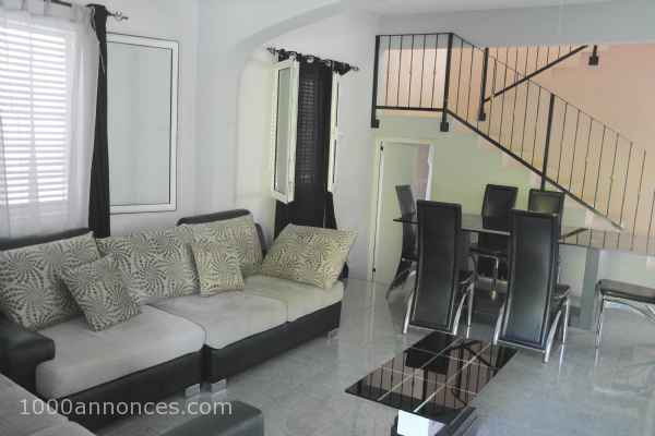 Elle se compose au rez de chaussée: D'une terrasse couverte, d'un vaste séjour salle à manger et cuisine ouverte, une salle de bains, un toilette. À l'étage 3 chambres climatisées, une salle de bains et toilette, un terrasse couverte.