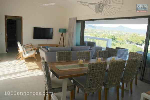 A louer Luxueux penthouse avec vue sur les montagnes et l’océan situé dans un complexe résidentiel à l’intérieur d’un morcellement de prestige à Rivière Noire. Ce penthouse entièrement meublé et équipé d’une surface de 220 m2 avec ascenseur et 2 places de parkings sécurisé. Il se compose : D’une immense terrasse couverte avec splendide vue, un vaste séjour salle à manger traversant avec ventilateurs au plafond, une cuisine séparée donnant sur le terrasse, 3 chambres en suite climatisées avec placards et ventilateurs de plafond, sécurité gardiennage 24h/24. coup de cœur assuré de belle prestation de qualité à visiter sans tarder !
