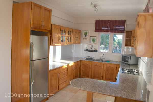 Coup de coeur assuré pour cette appartement meublé possédant une magnifique vue dégagé, situé au premier étage d'une villa de 2 appartements sécurisée, piscine, vaste jardin et garage. Il se compose: d'une terrasse, un vaste séjour salle à manger cuisine américaine, 4 chambres avec placards dont 2 en suites et 3 avec climatisations, une salle de bain avec toilette. Une visite vous raviras à coup sur son vaste jardin, son calme, un véritable havre de paix.