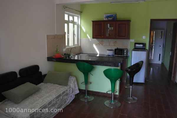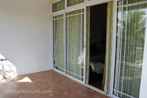 Ravissant appartement situé en haut d'une villa dans un quartier paisible au bord de la chassée de Wolmar. Il se compose: d'une terrasse couverte, d'un séjour avec cuisine américaine, une chambre climatisée avec placard et salle de bains plus toilette et balcon donnant sur la chassée. Disponible à partir le 1er octobre 2019