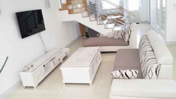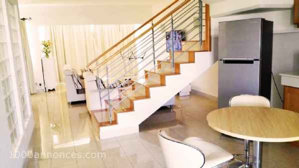 Appartement duplex au deuxièmes et dernière étages qui allie modernité, qualité et tranquillité un véritable havre de paix, dans une belle résidence sécurisé avec gardien. Elle se trouve à proximité de la plage, des commerces, arrêt de bus. Il se compose au rdc d'une cuisine ouverte et équipée donnant sur un vaste séjour salle à manger climatisé et grille antivol, une buanderie et un wc séparé. A l'étage 3 chambres climatisées dont une en suite, une salle de bains avec wc. Cet appartement est loué avec internet et my't. Un vrai coup de coeur une visite s'impose.Disponible Octobre 2019