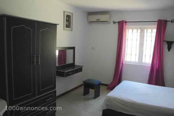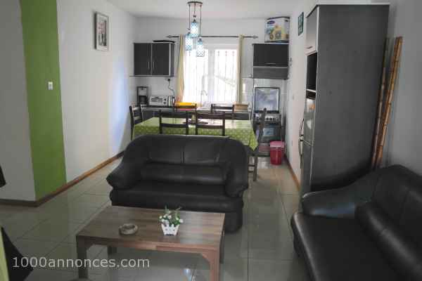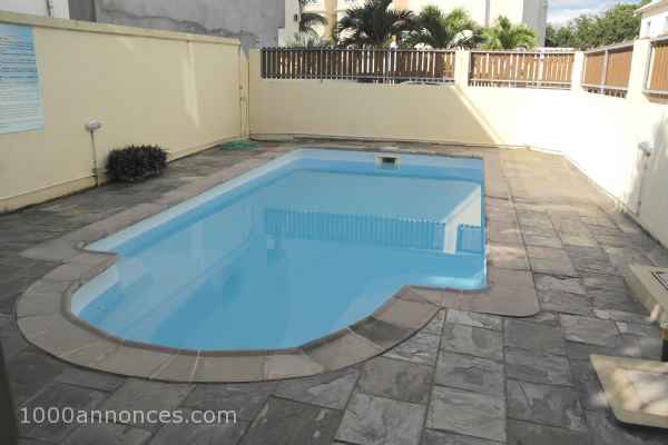 Flic en Flac location appartement récent situé au rez de chaussé avec piscine commune dans une résidence sécurisée et proche commerces, plage, quartier calme. Il se compose: D'un petit jardin, d'une terrasse, d'un espace séjour salle à manger et cuisine ouverte, 3 chambres climatisées, une salle de bains et toilette, un parking.