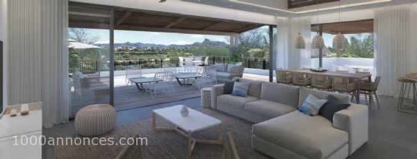 Le penthouse de 288m2 à 24,200,000Rs et l’appartement de 13M2 à 15,000,00Rs, revêtissent le style des bungalows côtiers. L'espace salon, Séjour et salle à manger et cuisine américaine s'ouvre sur un jardin tropical au rez-de-chaussée ou un balcon à l'étage. Tous nos appartements profitent d'une magnifique vue sur un éden de verdure et d'étangs naturels.