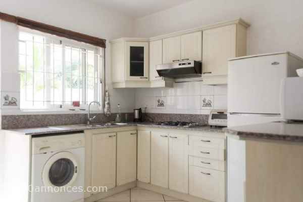 Situé au rez-de-chaussée d'une résidence sécurisé ce trouve un joli appartement très lumineux. Il se trouve dans l'angle de l'immeuble ce qui en fait le l'appartement le plus privée de la résidence. Il se compose d'un séjour, salle à manger, cuisine ouverte, 3 chambres à coucher climatisées dont une en suite. La résidence à une grande piscine commune et un joli espace jardin. Un gardien est présent sur place 24/24 7 jours semaines. Situé près de la mer, il est en fait un bijoux bien cacher. A qui la chance!
