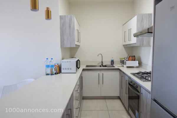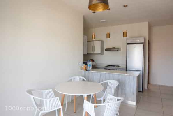 Nouvellement construit de style contemporain et une très belle piscine commune, proche de toutes commodités. L'appartement est loué entièrement meublé, un chauffe-eau à gaz. Il se compose: D'une terrasse, un espace séjour salle à manger avec une cuisine américaine le tout climatisé, 2 chambres climatisées avec placards, une salle de bains et toilette, une buanderie et un parking. Un vrai coup de coeur une visite s'impose!