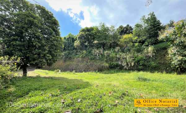 Ce terrain viabilisé et en partie plat, bénéficie d'un environnement calme, arboré, et d'une jolie vue dégagée sur la colline et une partie de l'île de Moorea.