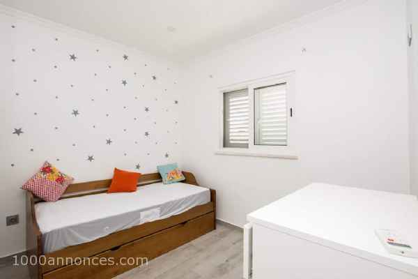 Bonjour, Je vends une magnifique maison jumelle, 3 pièces, entièrement rénovée, 2 terrasses. Equipement: machine à laver cuisine agencée avec four réfrigérateur + congélateur climatisation dans chaque pièce 1 lit double, 1 lit simple, 1 canape convertible nombreux placards et meubles de rangement double-vitrage panneau solaire pour chauffe-eau BBQ en dur