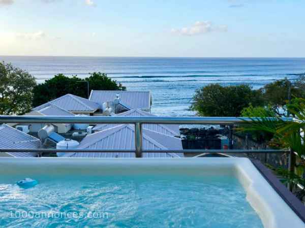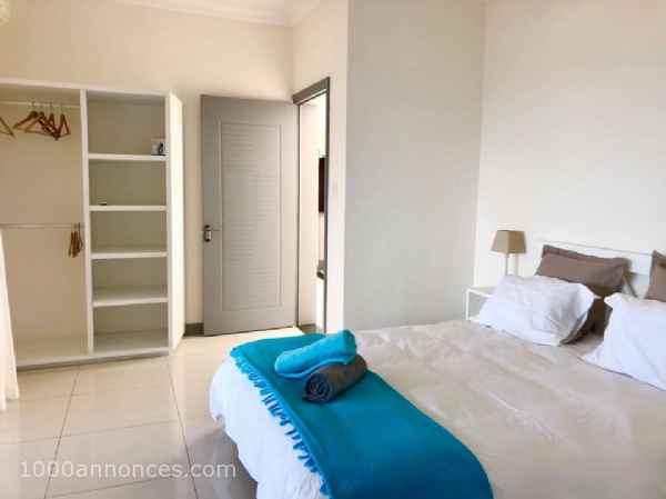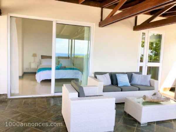 En direct du propriétaire. Appartement penthouse, Frangipanier, de 160 m² ( grande terrasse de 60 m² ) avec une belle vue sur la mer à Trou aux Biches. 3ème étage avec ascenseur. Entièrement meublé, 2 chambres, 2 salles de bains en suite, salon, salle à manger et cuisine ouverte avec lave-vaisselle et lave-linge. Grande terrasse et jacuzzi. Vue sur la mer depuis la terrasse, le salon et la chambre principale. Vue sur les montagnes depuis le salon et la chambre des enfants. Pas de vis-à-vis. 5 min à pied de la plage de Trou aux Biches, supermarché à 500m et pharmacie à 800m. Magnifique coucher de soleil tous les soirs .Petite copropriété et piscine dans la copropriété. Entièrement rénové. Wifi et femme de ménage inclus. Location minimum : 5 nuits.