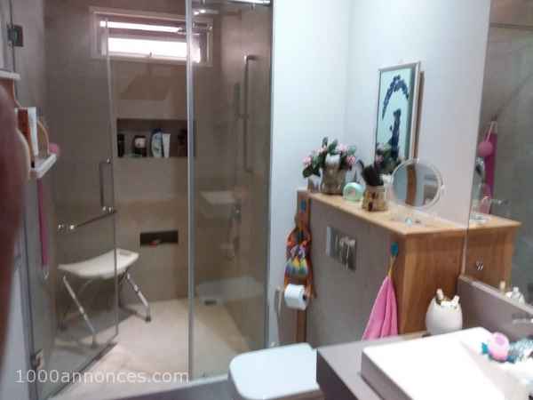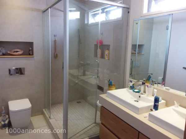 Appartement 171 m2 rezde jardin fleuri 3 chambres dont 2 avec SDB -sejour salle a manger et cuisine a l americaine equipee-grdes baies vitrees coulissantes-grd placard dans 2 chambres-clim partout-buanderie equipee terrasse dans jardin piscine dans copropriete fermee avec gardien et jardinier- groupe electrogene (5 min en voirture pour aller a la plage)